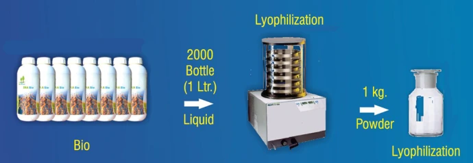 Application of Lyophilization technology in Agro sector is technological answer for overcoming the limitations in use of Bio products. We has invested the technology for the improvement of Bio Products that benefits to soil & plant health for Organic Agriculture.